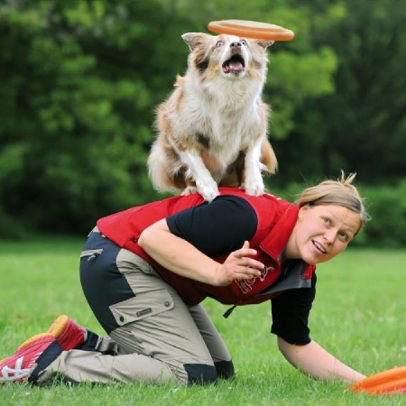 Rzuty dyskiem sprawią wiele radości i zapewnią dobrą zabawę zarówno Tobie, jak i psu. Frisbee jest dobrą formą aktywności dla wszystkich zdrowych psów. Zabawa dyskiem to trening dla Twojego psa nie tylko fizyczny ale również psychiczny, wzmacnia relację pomiędzy psem i właścicielem. Zacznij od prostych rzutów do nawet skakania przez ludzi. Disc Dogging obejmuje różne rzuty i wiele ich kombinacji, co pomaga zaoferować psu zawsze zróżnicowane i wymagające szkolenie.