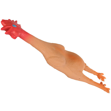 Zabawka kurczak z lateksu dzięki wydającym dźwiękom sprawi wiele radości psu podczas zabawy. Dzięki zastosowaniu lateksu jest odpowiednia również dla szczeniąt. Dodatkowym atutem jest niesamowita długość zabawki - 47 cm!