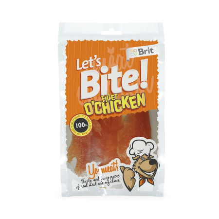 Brit Let's Bite Fillet O'Chicken filety z piersi kury to wyjątkowo smaczny, mięsny przysmak dla psa. Filety stanowią doskonałą, lekkostrawną przekąskę między posiłkami lub smakowitą nagrodę dla Twojego psa. Niskotłuszczowe przysmaki z suszonego mięsa kurczaka nie zawierają sztucznych barwników. Strunowe opakowanie umożliwia wielokrotne zamknięcie, dzięki czemu przekąski zachowują świeżość na dłużej.