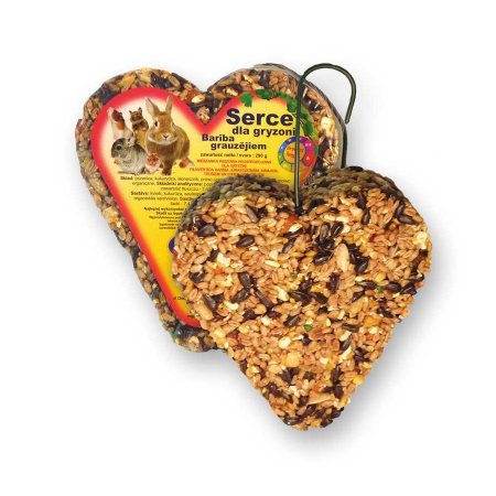 Karma Megan dla gryzoni i królików w formie serca to doskonały prezent dla pupila oraz jego właściciela. Stanowi mieszankę paszową pełnoporcjową dla gryzoni i królików, zawiera pszenicę, kukurydzę, słonecznik, proso czerwone, orzechy arachidowe.