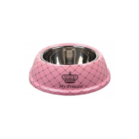 Miska My Princess ze stali nierdzewnej odpowiednia dla kotów oraz małych psów. Melamina jest wytrzymała i odporna na zadrapania, a wewnętrzna miseczka ze stali nierdzewnej ułatwia codzienne mycie. Idealna zarówno na wodę, jak i pokarm. Gumowe podstawki zapobiegają ślizganiu się miski. Zaprojektowana przez księżniczkę Maję von Hohenzollern.